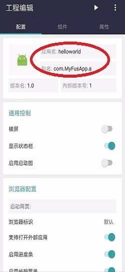 打开以后,你可以自己写应用名(即App软件的名称)和包名(必须由字母和数字组成);你还可以点击左上角的头像来选取你的App图标。